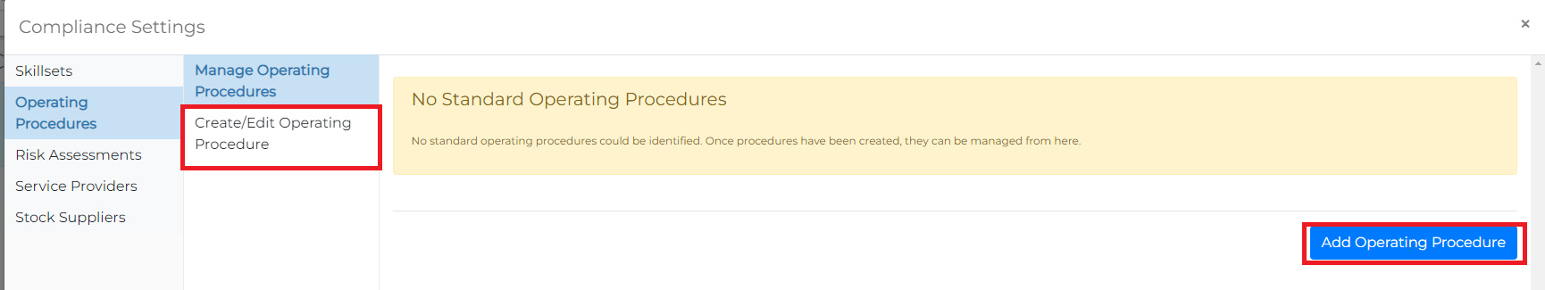 - Go to the Manage Operating Procedures menu.