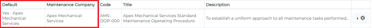 Associating an Operating Procedure with a Maintenance Company (Service Provider)